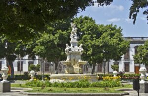 En 1891, la Corporación Municipal solicitó a la empresa de Francisco Franchini, en Genova (Italia), diferentes modelos de fuentes escultóricas con el fin de ver la que reunía mejores condiciones para esta distinguida Plaza. Como el costo de tan lujosa y esbelta fuente (11.380 liras) rebasaba las posibilidades económicas del Ayuntamiento, para poderla financiar hubo que recurrir a las aportaciones vecinales, organizar bailes e instalar tómbolas y bazares, incluso hubo que vender las maderas de los barracones que se habían instalado en la Plaza de Toros para alojar las tropas repatriadas de Cuba. La instalación de la monumental fuente comenzaría en 1893, siendo inaugurada el domingo 6 de mayo de 1899.