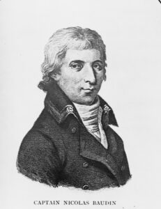 Nicolás Thomas Baudin (Francia. 1754 – Isla Mauricio, 1803), ingresó en la marina mercante a la edad de quince años y, cinco años más tarde, formaría parte de la tripulación de la Compañía francesa de las Indias Orientales, capitaneando los barcos que trasladaban a los botánicos austriacos al Océano Índico y al Océano Pacifico, aprendiendo de ellos la forma de mantener con vida, a bordo, a los animales y a las plantas.